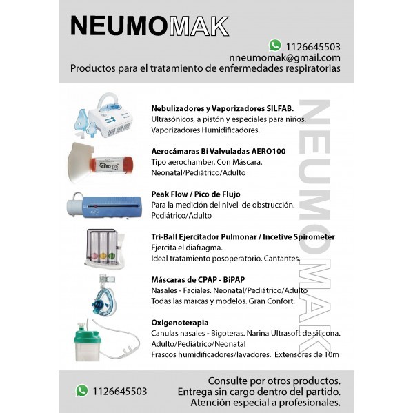 Aerocámaras, Humudificadores, Medidor pico de flujo, Ejercitadores pulmonares, Oximetros.