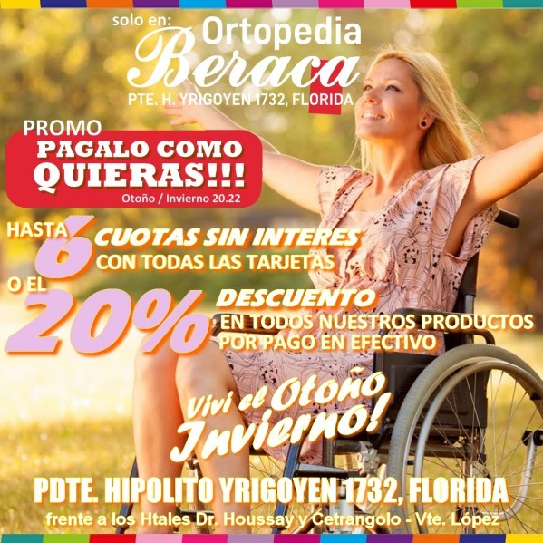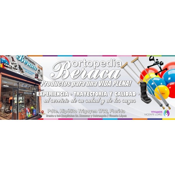 "Somos un nuevo concepto en ortopedia, estamos abocados a la provisión de artículos ortopédicos e insumos médicos hospitalarios, contamos con profundos valores éticos, morales y cristianos, con un fuerte compromiso por mejorar la calidad de vida de aquellos que lo necesitan. Desde ORTOPEDIA BERACA ponemos a su disposición toda nuestra experiencia obtenida durante más de una década ofreciendo ayudas técnicas, brindando la mejor y mas destacada atención. NUESTRA MISIÓN: es mejorar la calidad de vida de nuestros clientes desde la certeza de "DAR SOLUCIONES CONCRETAS A PERSONAS CON NECESIDADES ESPECIFICAS". Le ofrecemos lo que muchas ortopedias dejaron de lado, el de ofrecerles a sus clientes; Calidad, Confiabilidad y buen Servicio". Los esperamos en: Pdte. Hipólito Yrigoyen 1732 , Florida frente a los hospitales de Vicente López | Tel.: 2008-8707